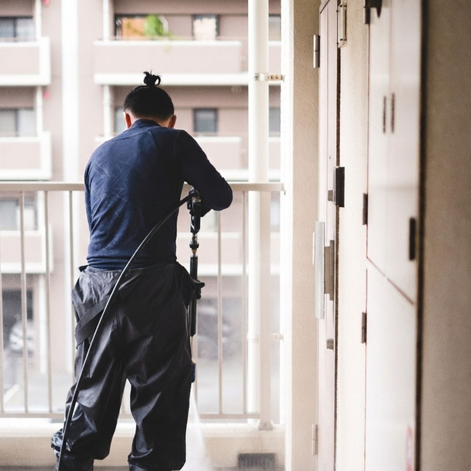 高圧洗浄機を使うときも同じです。音が大きいため、なるべく短時間で作業を完了させ、静かな環境を取り戻せるようにしています。