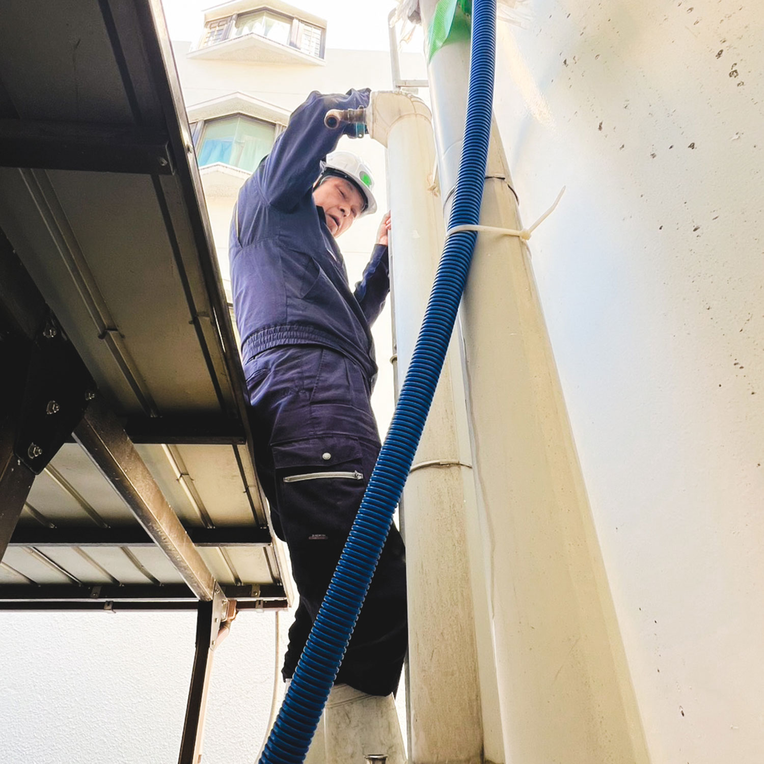 私の担当は、マンションやビルに設置されている貯水槽の清掃です。